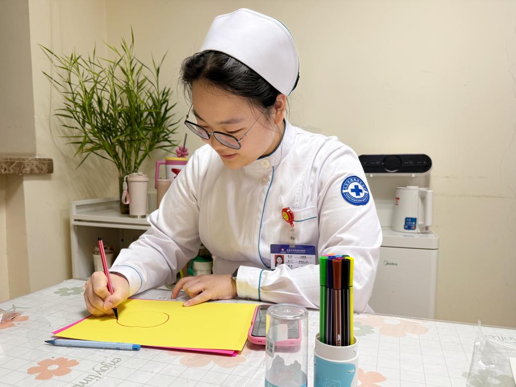 活动前,科室医护人员及家属利用休息时间,在纸上写下“祝您早日康复”“年年逢重阳,岁岁皆安康”等真挚祝福。更动人的是,小朋友用稚嫩小手,画出太阳、花朵、爱心等童趣简笔画。这些笔墨与图画,交织成物质与精神双重慰藉。