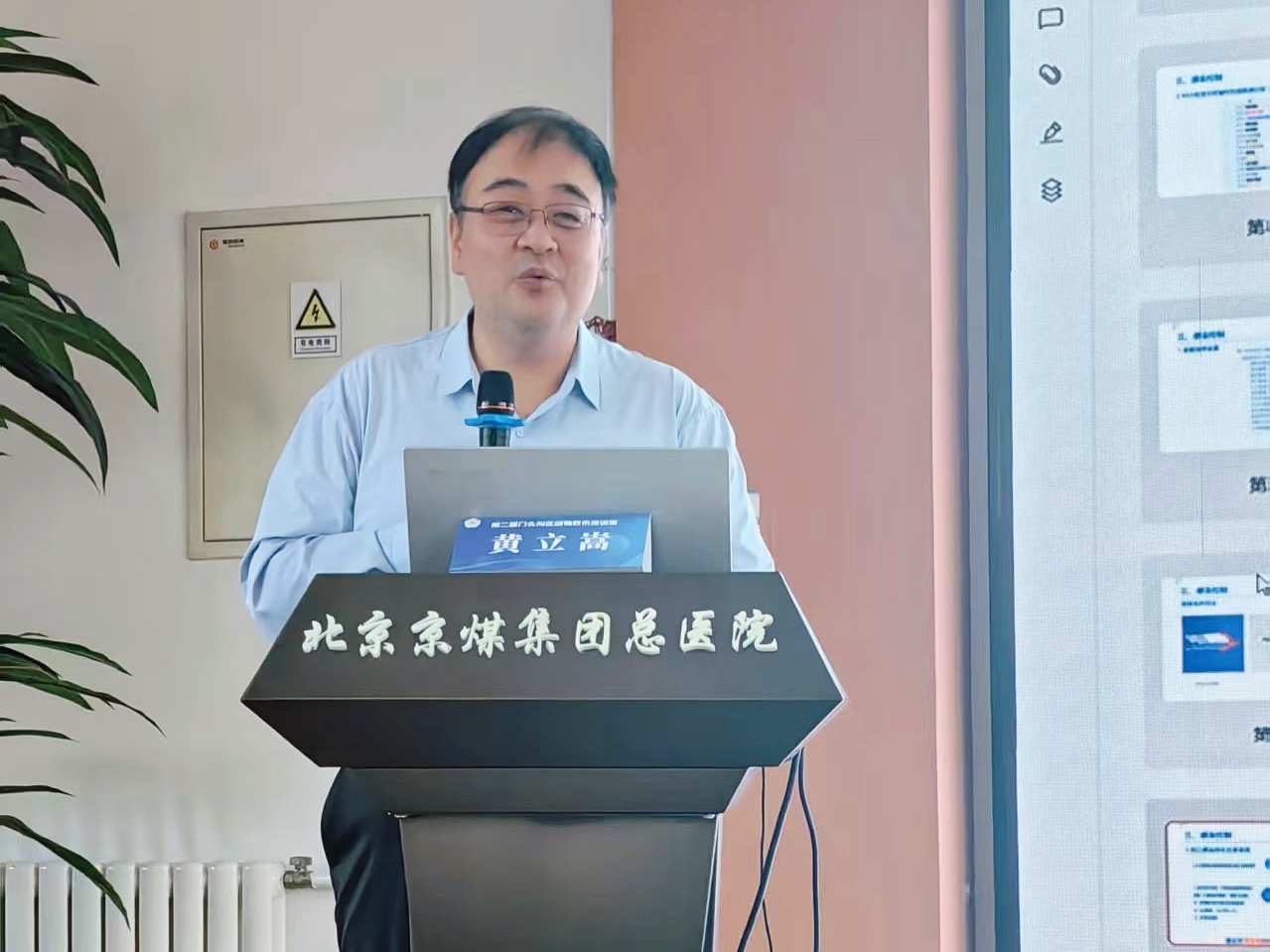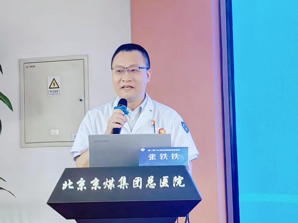 京煤总医院副院长张铁铁致辞。指出区域居民生活质量提升后,居家养宠接受度与便利性需求提高,医务人员需提升动物致伤诊治能力,本次培训及时且意义重大。