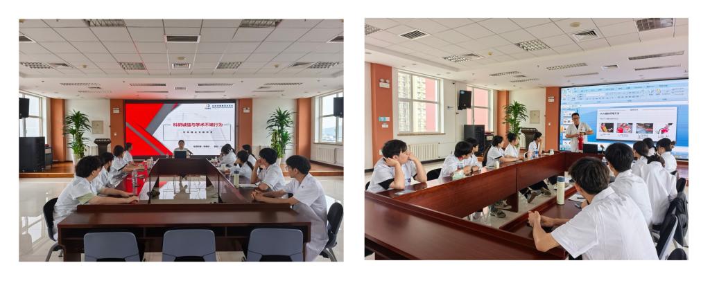 本次培训还设置了《科研诚信与学术不端行为规范》、《安全培训》等内容。在科研诚信专题培训过程中,科教处王昭老师通过政策文件、典型案例剖析等方式,引导实习医师树立严谨的科学态度,筑牢学术道德底线。《安全培训》则采用理论结合实践的教学模式,邀请保卫科邱頔科长对消防安全进行培训并现场示范,手把手指导实习医师掌握灭火器的使用方法,提高学生的安全意识和安全责任。培训最后环节,班主任老师带领实习新生参观了院区,对主要场所及环境进行介绍,以便学生能快速熟悉和融入新的学习环境。
