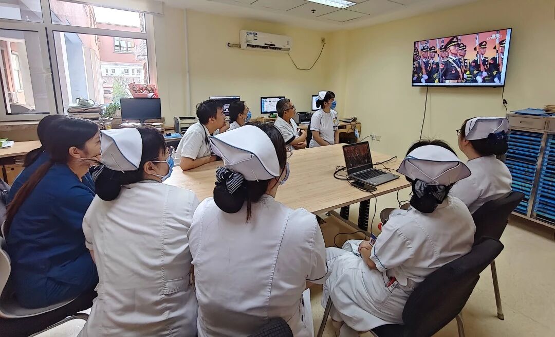 京煤总医院广大干部职工通过电视、网络等方式积极观看纪念大会直播活动,共同铭记历史、缅怀先烈,激扬奋进力量。当中共中央总书记、国家主席、中央军委主席习近平发表重要讲话时,每位党员干部都认真聆听、深刻领会。直播中,装备方队浩浩荡荡驶过天安门,各类战机划破长空,这一刻,大家眼眶湿润。“飞机不够就飞两遍”的历史回忆与如今战鹰翱翔的壮观景象形成鲜明对比,勾勒出国家从站起来、富起来到强起来的伟大征程。
